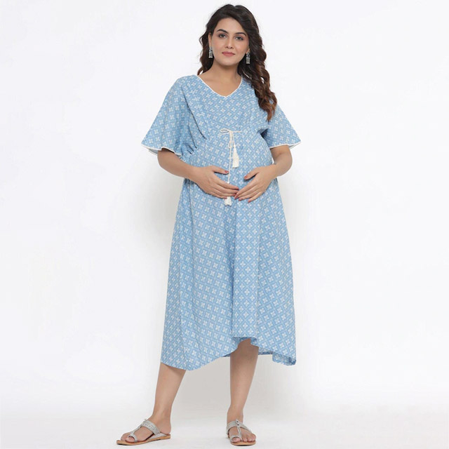 Specifications of Blue Printed Maternity & Nursing Cotton Midi Kaftan Dress