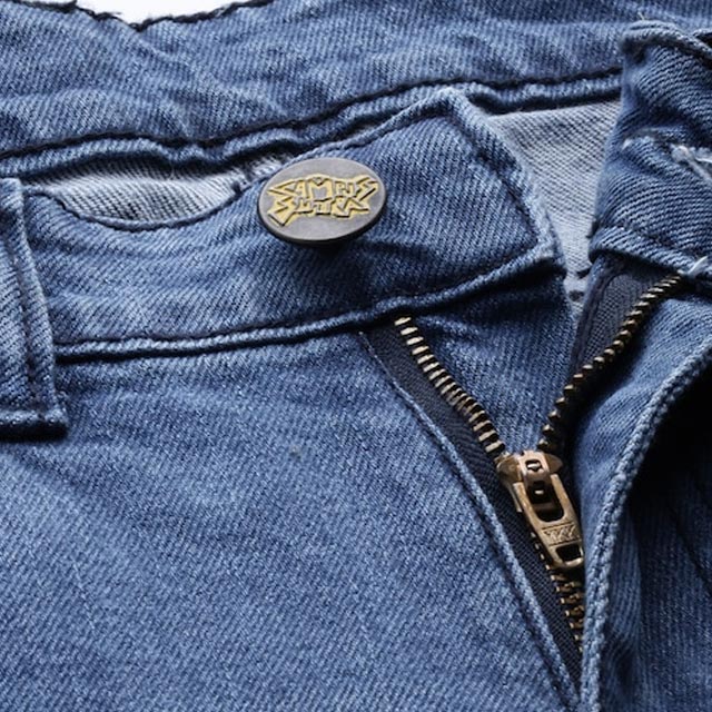 Blue washed mid-rise denim shorts, has five pockets, a button and zip closure