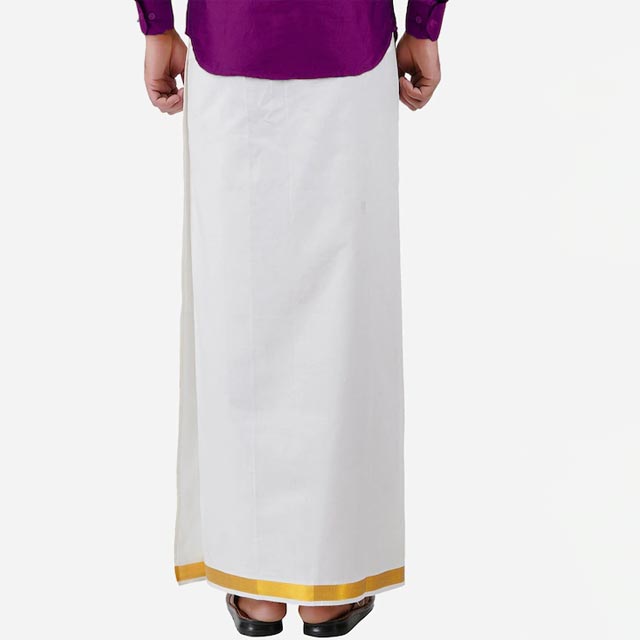 Specifications of Men White & Gold-Coloured Solid Pure Cotton Dhoti