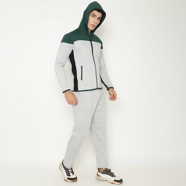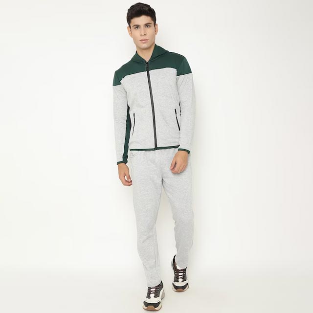 Specifications of Chkokko Men Grey & Green Colourblocked Cotton Tracksuit