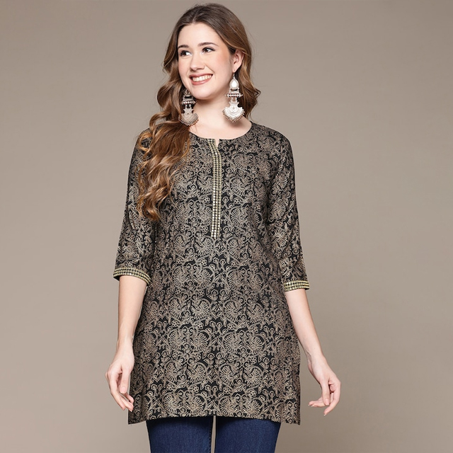 Specifications of Black & Gold-Toned Ethnic Motifs Printed Kurti