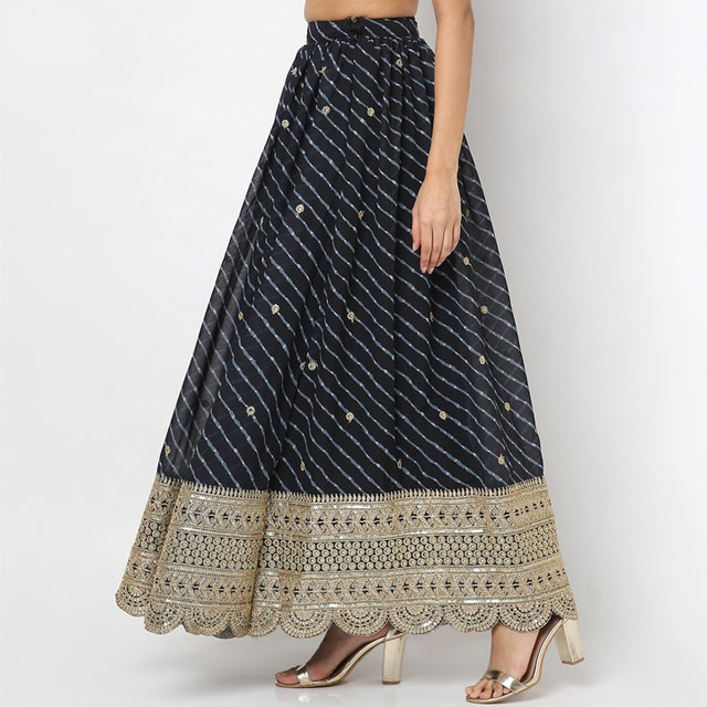 Specifications of Women Navy Blue Embroidered Maxi Flared Skirts