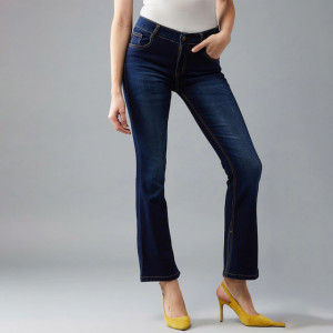 Women Blue Bootcut Mid-Rise Clean Look Stretchable Jeans